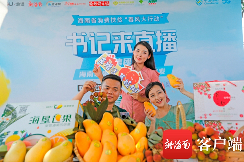 新海南客戶端、南海網(wǎng)、南國都市報5月15日消息(記者 陳望)5月15日下午,海南省消費扶貧“春風大行動”之“八方助農(nóng) 抖音嗨購 扶貧山貨上頭條”活動海墾集團專場在??谑腥T坡鎮(zhèn)海墾紅明農(nóng)場公司“荔海共享農(nóng)莊”舉行。海墾集團黨委副書記、總經(jīng)理王業(yè)僑首次化身“海墾好物推薦官”,聯(lián)合抖音達人、南海網(wǎng)、南國都市報主播現(xiàn)身抖音直播間,為大家推薦海墾優(yōu)質(zhì)的農(nóng)產(chǎn)品,號召大家“買買買”。