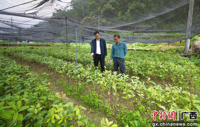圖為容縣高山香石頭八角母本園繁育苗圃基地幼苗培育。謝德桐 攝