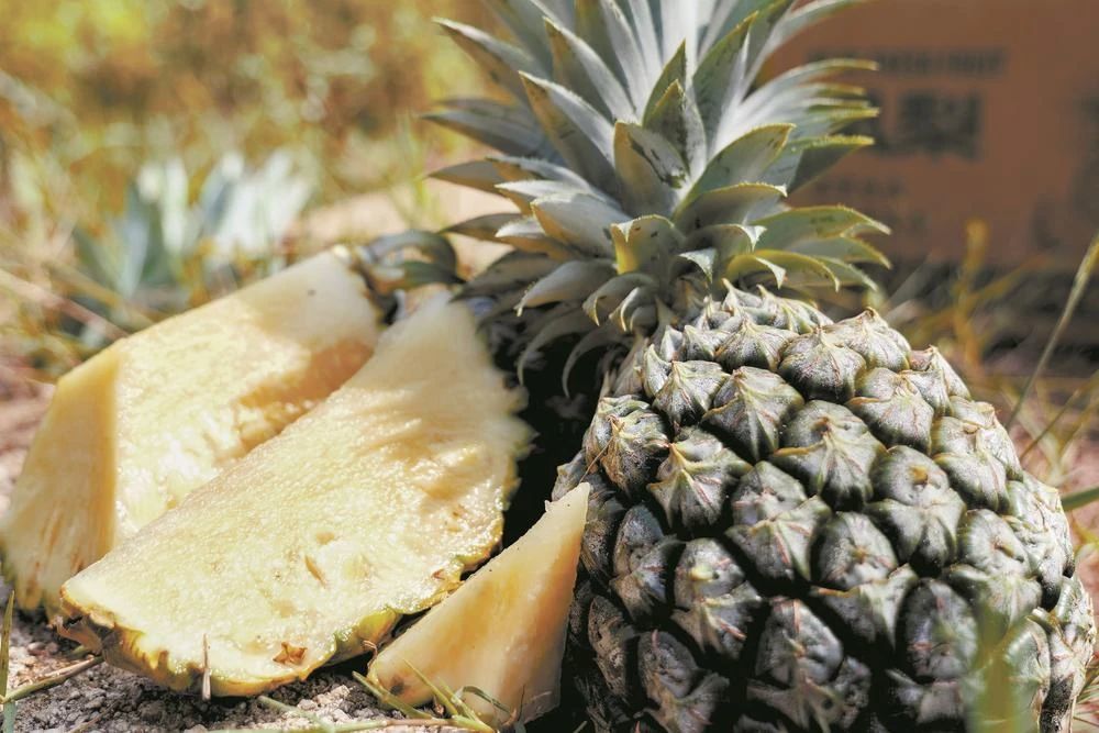 據(jù)了解,“西瓜鳳梨”因其果形碩大,在鳳梨家族中脫穎而出,被譽(yù)為鳳梨界的“巨人”?!拔鞴哮P梨”果肉細(xì)膩多汁,甜度較高,帶有濃郁的鳳梨香氣,果肉色澤金黃,入口爽脆,酸甜可口,味道極佳,深受市場(chǎng)青睞。