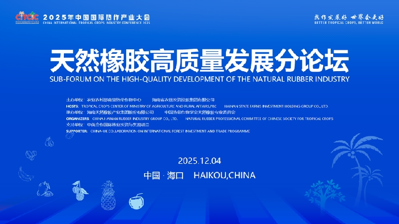 12月4日下午,2025年中國國際熱作產(chǎn)業(yè)大會天然橡膠產(chǎn)業(yè)高質(zhì)量發(fā)展分論壇在中國??谑谐晒εe辦。本論壇由農(nóng)業(yè)農(nóng)村部南亞熱帶作物中心、海南省農(nóng)墾投資控股集團(tuán)有限公司聯(lián)合主辦,海南天然橡膠產(chǎn)業(yè)集團(tuán)股份有限公司和中國熱帶作物學(xué)會天然橡膠專業(yè)委員會共同承辦,中英合作國際林業(yè)投資與貿(mào)易項目(InFit)支持舉辦。論壇以“綠色引領(lǐng) 膠聯(lián)全球”為主題,匯聚天然橡膠產(chǎn)業(yè)國內(nèi)外政產(chǎn)學(xué)研商領(lǐng)域代表150多人,邀請權(quán)威專家圍繞科技賦能、供應(yīng)鏈韌性、綠色轉(zhuǎn)型等核心議題展開深度交流,共商產(chǎn)業(yè)高質(zhì)量發(fā)展路徑。論壇由中國熱帶農(nóng)業(yè)科學(xué)院橡膠研究所研究員、國際橡膠研究與發(fā)展委員會原主席周建南主持。