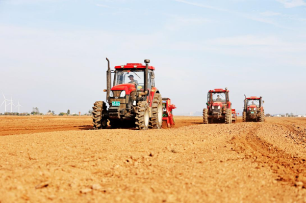日前,在位于安徽省滁州市明光市境內(nèi)的安徽農(nóng)墾潘村湖農(nóng)場(chǎng)第二農(nóng)業(yè)生產(chǎn)管理區(qū),5臺(tái)旋耕施肥播種復(fù)式一體機(jī)正在開展小麥播種作業(yè)?!敖衲瓴テ谡w較往年有所推遲,采用輕簡(jiǎn)化新型機(jī)械作業(yè),可縮短作業(yè)周期,促進(jìn)及早出苗。”潘村湖農(nóng)場(chǎng)總經(jīng)理助理程國華說。