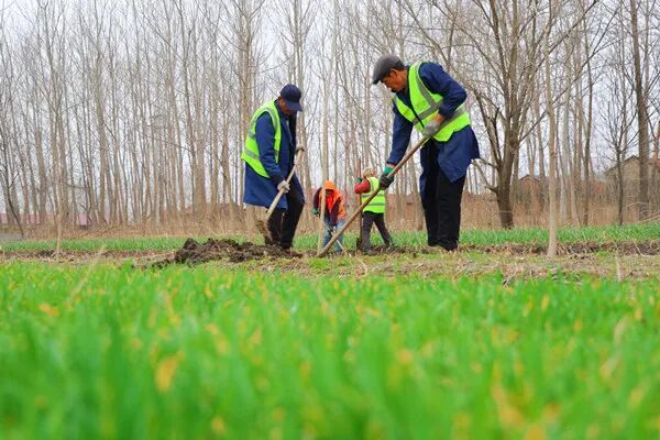 走進(jìn)植樹現(xiàn)場(chǎng),目光所及之處皆是忙碌的身影。工人們分工明確、配合默契,有的配合車輛將樹苗有序放置在指定位置,有的熟練地?fù)]動(dòng)著鐵鍬挖坑,有的則輕輕將樹苗放入坑中扶正,再填土、澆水……每一個(gè)環(huán)節(jié)都一絲不茍,確保樹苗栽植管護(hù)到位。