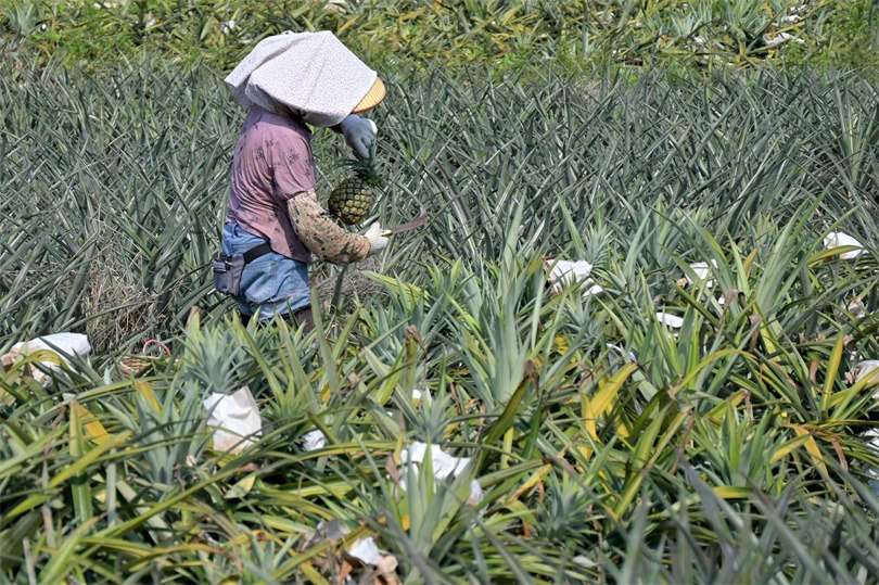 在神灣大果園農(nóng)場,果農(nóng)正在采摘菠蘿。 (攝影|繆曉劍)