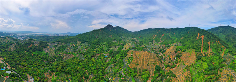 神灣菠蘿產(chǎn)業(yè)園,丫髻山及附近的菠蘿種植場如一塊塊梯田點綴其間。(攝影|余兆宇)
