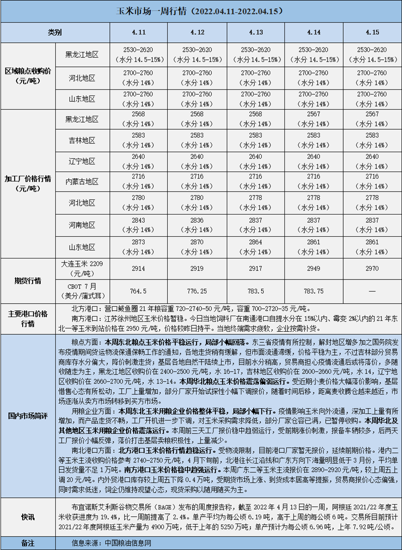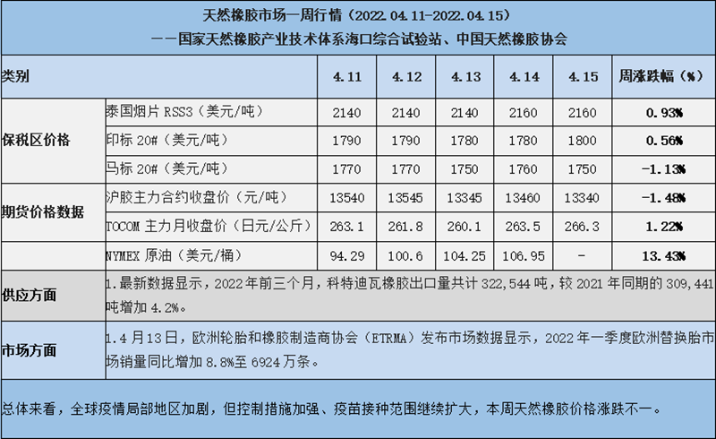 天然橡膠、大豆、玉米市場(chǎng)一周行情(2022.04.11-04.15)