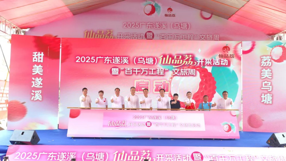 ▲廣東遂溪(烏塘)仙品荔開采活動暨“百千萬工程”文旅周啟動,領(lǐng)跑廣東荔枝銷售“第一棒”。