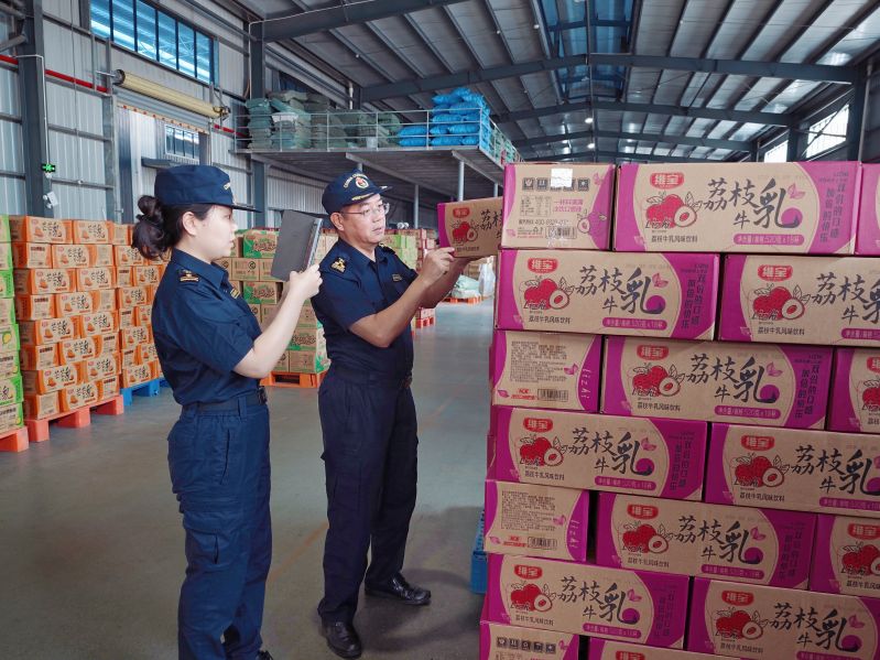 圖為:海關(guān)關(guān)員對荔枝牛乳進行監(jiān)管