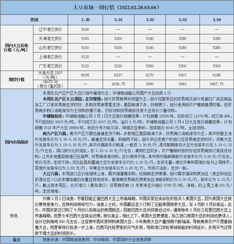 天然橡膠、大豆、玉米市場一周行情(2022.02.28-03.04)