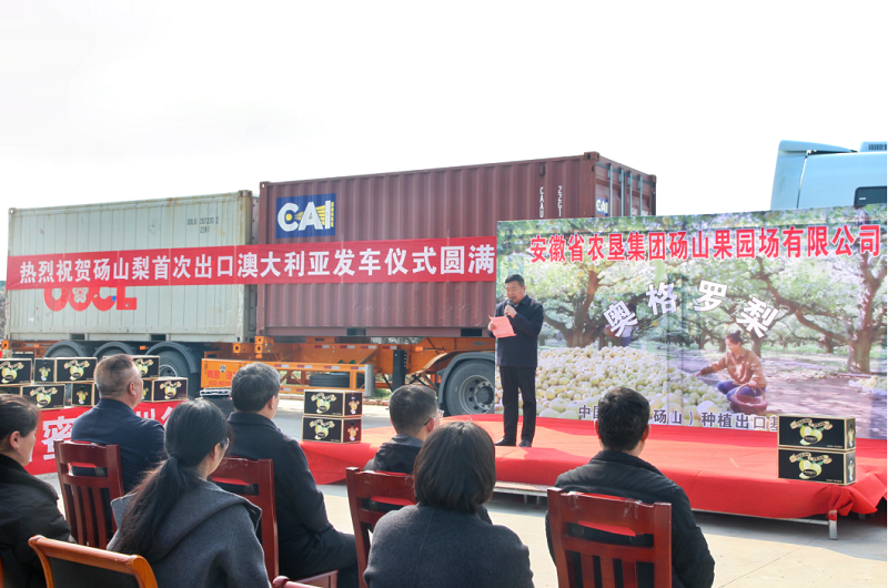 “這是繼去年碭山梨成功出口泰國(guó)后的又一次重要突破?!卑不帐∞r(nóng)墾集團(tuán)市場(chǎng)總監(jiān)齊廣鵬在當(dāng)日上午舉行的碭山梨出口澳大利亞啟運(yùn)儀式上表示,碭山梨成功登陸澳大利亞,充分證明安徽農(nóng)墾農(nóng)產(chǎn)品品質(zhì)已達(dá)到國(guó)際一流標(biāo)準(zhǔn),更為皖墾特色農(nóng)產(chǎn)品規(guī)?;?、標(biāo)準(zhǔn)化出海樹立了新標(biāo)桿。