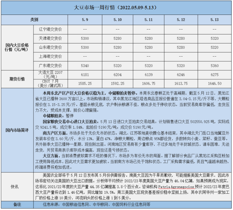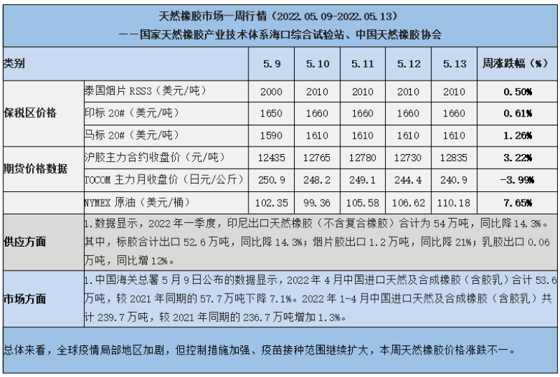 天然橡膠、大豆、玉米市場一周行情(2022.05.09-05.13)