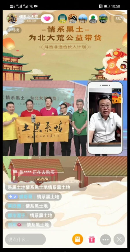 疫情暴發(fā)后,北大荒牽動著無數(shù)知青的心。為助力復工復產(chǎn)后北大荒企業(yè)發(fā)展,姜昆公益基金會發(fā)起了這場公益直播帶貨活動,并得到了央視、抖音官方、惠買集團、北京星合匯文化發(fā)展有限公司的大力支持。