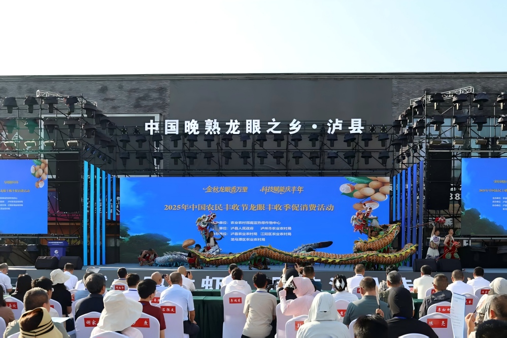 9月15日,由農(nóng)業(yè)農(nóng)村部南亞熱帶作物中心主辦,瀘縣人民政府、瀘州市農(nóng)業(yè)農(nóng)村局承辦的2025年中國(guó)農(nóng)民豐收節(jié)龍眼豐收季促消費(fèi)活動(dòng)在“中國(guó)晚熟龍眼之鄉(xiāng)”——四川瀘州市瀘縣成功舉辦。農(nóng)業(yè)農(nóng)村部農(nóng)墾局副局長(zhǎng)、一級(jí)巡視員程景民,農(nóng)業(yè)農(nóng)村部南亞熱帶作物中心副主任黃輝,四川省農(nóng)業(yè)農(nóng)村廳二級(jí)巡視員周南華,瀘州市人民政府副市長(zhǎng)葛洪亮,瀘州市人大常委會(huì)副主任、瀘縣縣委書(shū)記李仁軍等出席啟動(dòng)儀式,龍眼種植大戶,龍眼科研專家學(xué)者,收購(gòu)商、服務(wù)商及全產(chǎn)業(yè)鏈企業(yè)代表等200余人齊聚一堂,共慶龍眼喜獲豐收,共享龍眼甜蜜成果,共謀龍眼發(fā)展大計(jì)。同期還舉辦了全國(guó)龍眼產(chǎn)業(yè)學(xué)術(shù)研討活動(dòng)及瀘縣第12屆龍眼龍蝦消費(fèi)季活動(dòng)。